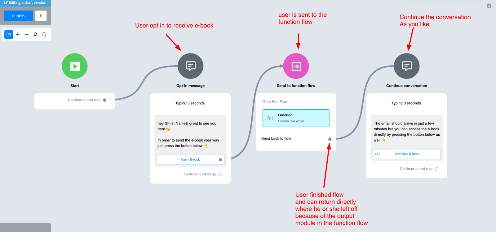 This output is what makes this function flow so unique as it gives you the ability to send the user back to the previous flow (if you like) exactly where he or she left off.
