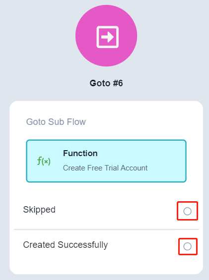 When you call a Function Flow with multiple outputs, the titles of those outputs will show in the Goto Step and you can handle it accordingly.