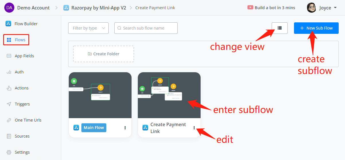 When bot users first talk to your bot, the main flow is run. But here in the Mini-App system, the main flow doesn't have any special meaning. It's just like any other mini-app subflow.