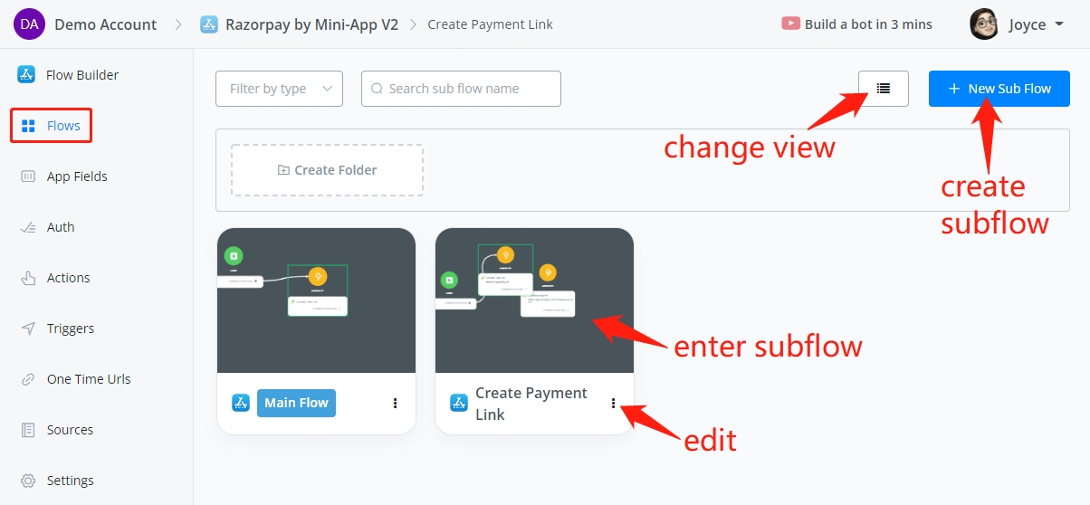 In the chatbot system, normal subflow runs in the front end and workflow run at the backend but in the Mini-App system, they are all run in the back since there is no Send Message Step or Question Step in mini-apps.