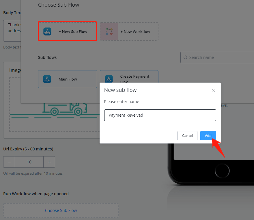 | Web Page              | To display confirmation messages for previous parts and call a subflow |