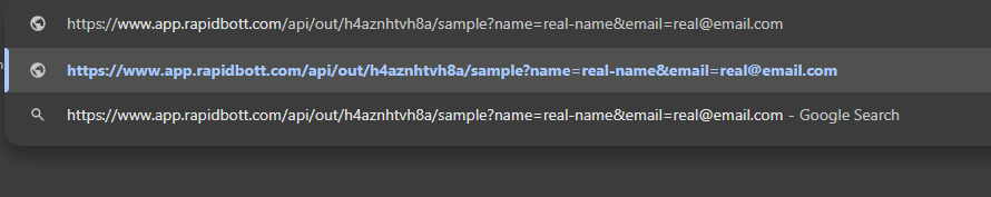 **Parameters** and **Web Forms** sections are both optional. You are free to have a one-time URL only receiving data or only collecting data via a form.
