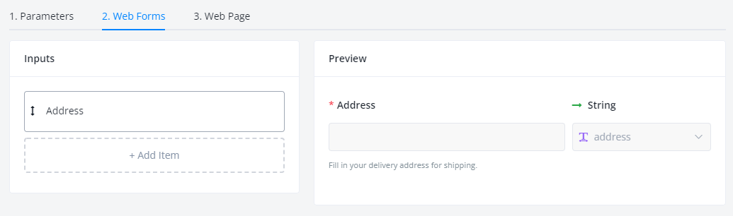 Add as many web form inputs as you need, click on **Save** when you finish. Have a check on the **Preview** area.