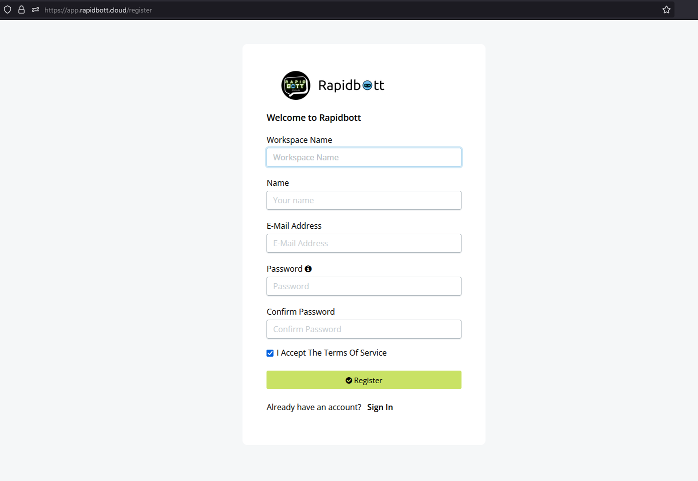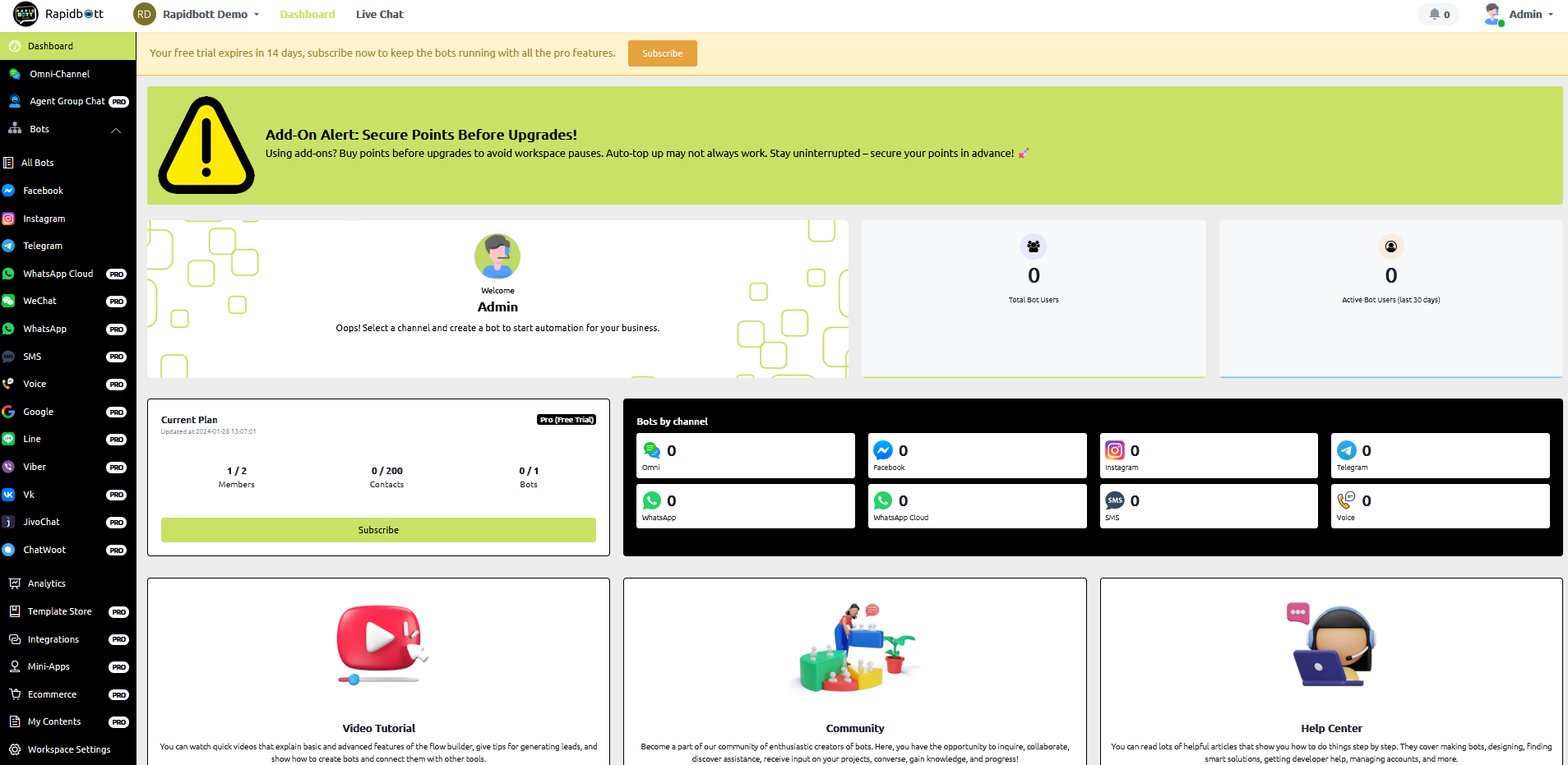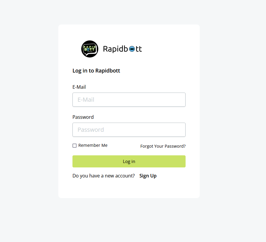 As mentioned, once you receive your confirmation email containing your unique account set up details, log in and you will then be able to access the Rapidbott builder dashboard.