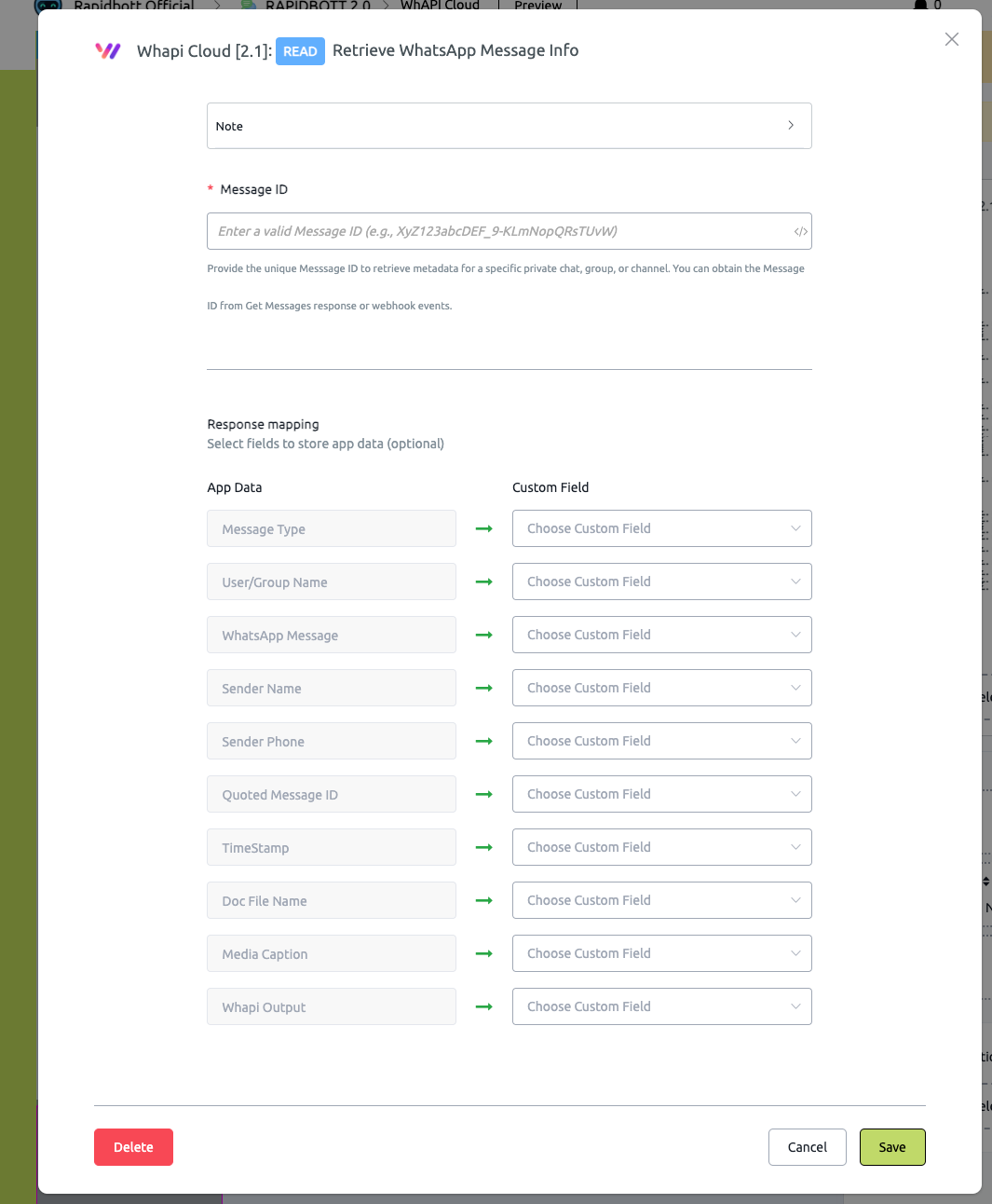 ## 2. Action: Retrieve WhatsApp Message Info