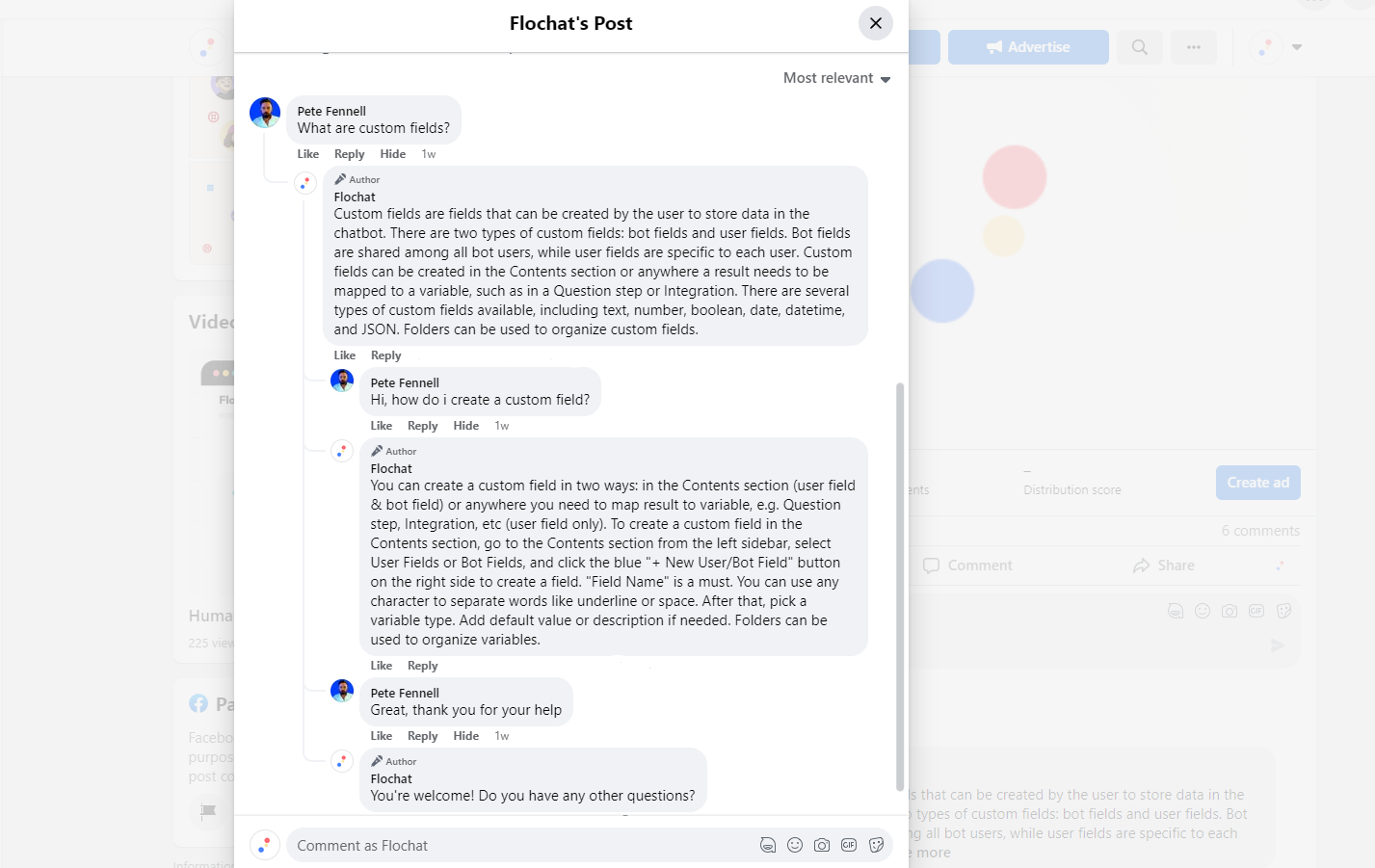 <figure><img src="https://2144409983-files.gitbook.io/~/files/v0/b/gitbook-x-prod.appspot.com/o/spaces%2FHbDmB8MlZRo4hzrDiO0X%2Fuploads%2FCPeH8UHpE4OQV9ZBdNBb%2FCapture.png?alt=media&#x26;token=4fd771f2-79e7-44b6-af7c-43962890b454" alt=""><figcaption><p>Automated Facebook Comment Support | Flochat</p></figcaption></figure>